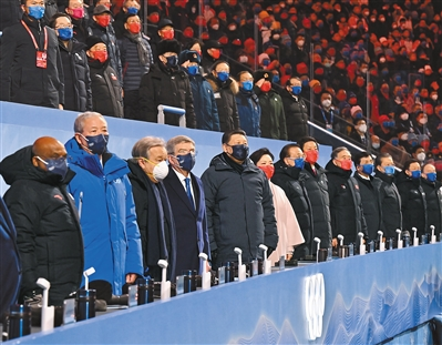 習(xí)近平出席開幕式并宣布本屆冬奧會(huì)開幕李克強(qiáng)栗戰(zhàn)書汪洋王滬寧趙樂際韓正王岐山國(guó)際奧委會(huì)主席巴赫來自世界各地的領(lǐng)導(dǎo)人和貴賓等出席