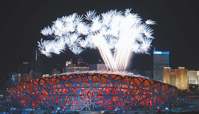 夜幕下的國(guó)家體育場(chǎng)華燈璀璨、美輪美奐,這座以鳥巢造型聞名于世的建筑,即將創(chuàng)造歷史,成為世界上首座舉辦過冬奧會(huì)和夏奧會(huì)“雙奧”開幕式的體育場(chǎng)館。