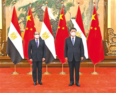 習(xí)近平強調(diào),雙方要繼續(xù)在涉及彼此核心利益和重大關(guān)切問題上相互支持,中方支持埃及走符合自身國情的發(fā)展道路,推進民族復(fù)興大業(yè)。雙方要深化互利合作,繼續(xù)推動共建“一帶一路”倡議同埃及“2030愿景”對接,推進蘇伊士運河走廊開發(fā)等合作項目,就落實全球發(fā)展倡議開展合作。去年兩國合作建成非洲第一條新冠疫苗聯(lián)合生產(chǎn)線,深化了雙方戰(zhàn)略合作內(nèi)涵。雙方要繼續(xù)團結(jié)抗疫,中方愿繼續(xù)向埃及提供疫苗支持,擴大疫苗聯(lián)合生產(chǎn)等合作,助力埃及成為非洲疫苗生產(chǎn)中心,共同為促進疫苗在發(fā)展中國家可及性和可擔(dān)負(fù)性作出貢獻。雙方還要共同引領(lǐng)中阿(拉伯)、中非集體合作,加快打造面向新時代的中阿命運共同體,推動中非合作論壇“九項工程”取得更多早期收獲,促進非洲發(fā)展振興。