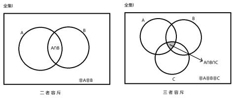 三者容斥公式:全集I=A+B+C-A∩B-B∩C-A∩C+A∩B∩C+非A非B非C