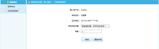 在此頁面可以完成對考生個人信息的修改。