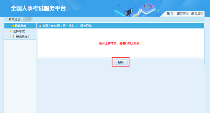 點(diǎn)擊“報(bào)名信息確認(rèn)”按鈕后,跳轉(zhuǎn)到報(bào)名信息確認(rèn)頁面, 通過點(diǎn)擊“確認(rèn)”按鈕,提示確認(rèn)成功后跳轉(zhuǎn)到報(bào)考流程頁面,則完成填報(bào)信息操作。