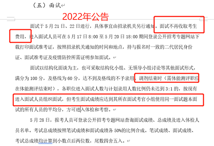 2022年的面試階段需要考生尤其關(guān)注,首先一個(gè)好消息就是面試取消收費(fèi)。還有一個(gè)重要的變革就是調(diào)劑結(jié)束后,未達(dá)比例的仍然進(jìn)行面試,小伙伴們不用擔(dān)心自己考得好報(bào)省無門啦,只要你的筆試成績(jī)足夠高,你就能順利進(jìn)入面試階段。而從出成績(jī)到面試僅有不足一個(gè)月的時(shí)間,你如何做到“考生面試成績(jī)應(yīng)達(dá)到其所在面試考官小組使用同一面試題本面試的所有人員的平均分,方可進(jìn)入體檢和考察?!边@一點(diǎn),無疑對(duì)考生的要求更加嚴(yán)格!