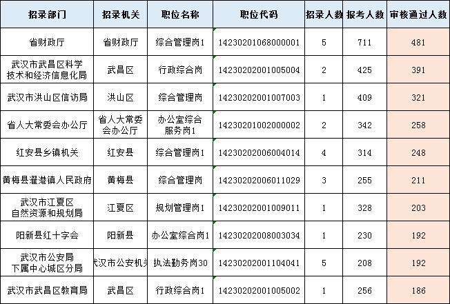 截至2月23日,2022年湖北公務(wù)員考試報名第五天,已有111441人報名,76329人通過審核,報名人數(shù)最多的職位是(省財政廳-綜合管理崗1-14230201068000001)一職,該崗位招錄5人,已有711人報名,481人通過審核。截至2月23日,共有170個崗位無人報考。具體可下載附件查看: