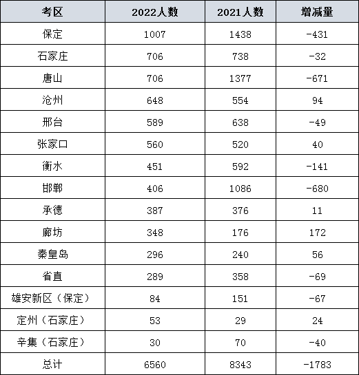 2021年、2022年河北省考各地區(qū)招錄人數(shù)對比