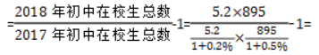 【例題1】2018年全國共有初中5.2萬所,比上年增長0.2%,平均每所初中在校生895人,比上年增加了0.5%,問題:2018年全國初中在校生比上年同期增長了百分之幾?( )