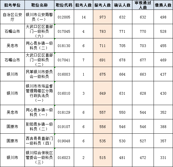 以下為報(bào)考人數(shù)最多的前十崗位