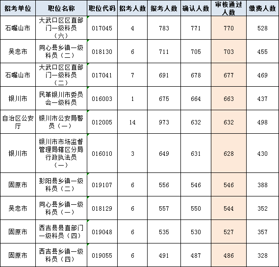 以下為審核通過(guò)人數(shù)最多的前十崗位