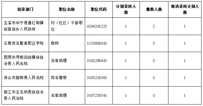 云南省2022年度公務(wù)員招錄筆試報(bào)名階段取消職位表