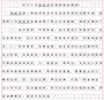 【例題1】假如你隨某市商務(wù)局團(tuán)考察了G市“夜經(jīng)濟(jì)”發(fā)展情況,請報(bào)據(jù)“給定資料4”寫一份調(diào)研報(bào)告提綱。(20分)