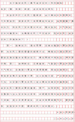 【例題】結(jié)合材料7,以A縣政府的名義,就做好農(nóng)民工春節(jié)返鄉(xiāng)安全工作草擬一份通知。