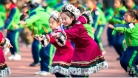 △內(nèi)蒙古呼和浩特,南茶坊小學(xué)編排了一套具有民族特色的課間操。(圖/視覺中國)