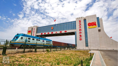 △2021年7月,一列中歐班列駛?cè)攵B浩特國門。(圖/視覺中國)