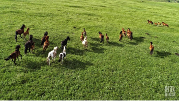 △內(nèi)蒙古烏蘭察布,馬群奔跑在輝騰錫勒草原。(圖/視覺中國)