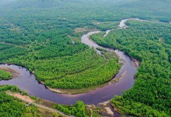這是內(nèi)蒙古呼倫貝爾根河源國家濕地公園景色(無人機(jī)照片,2021年6月8日攝)。新華社記者連振攝