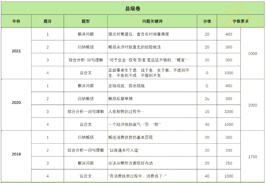 題型:概括題、分析題、對(duì)策題、公文題以及文章寫(xiě)作五大類(2018年沒(méi)有申論大作文)