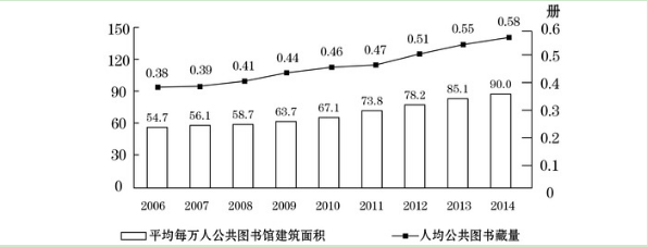 B.2014年平均每個(gè)公共圖書館擁有20多個(gè)閱覽室座席