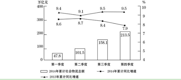 128.2014年全國(guó)社會(huì)物流總額最高的季度是( )。