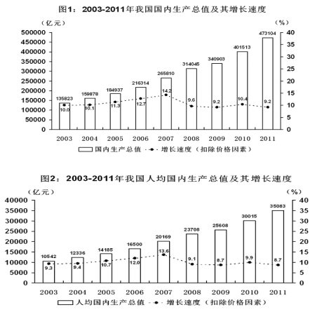 (1)2004-2011年八年,我國(guó)國(guó)內(nèi)生產(chǎn)總值與人均國(guó)內(nèi)生產(chǎn)總值保持相同的變動(dòng)態(tài)勢(shì)