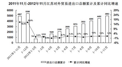 (1)2011年12月江蘇對(duì)外貿(mào)易進(jìn)出口總額不足2011年的10%