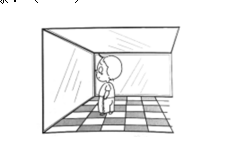 24、如下圖所示,房間中互相垂直的墻和天花板都是由鏡子構(gòu)成,形成了3個(gè)兩兩互相垂直的平面鏡。站在其中的小明會(huì)成多少個(gè)像?( )