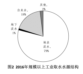 2016年,J省規(guī)模以上工業(yè)取水量為86.4億立方米,比上年增長4.4%。其中,直采自江、河、淡水湖、水庫等的地表淡水68.1億立方米,比上年增長3.8%,所占比重比上年下降0.4個百分點;自來水取水量15.9億立方米,同比增長6.0%。