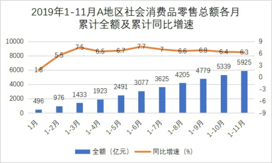 88.2019年12月,A地區(qū)社會(huì)消費(fèi)品零售總額同比增速約為?( )