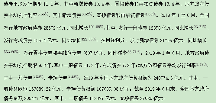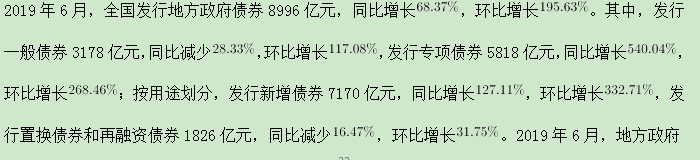 111.2019年6月,全國(guó)發(fā)行的地方政府債券比2018年6月多約:( )
