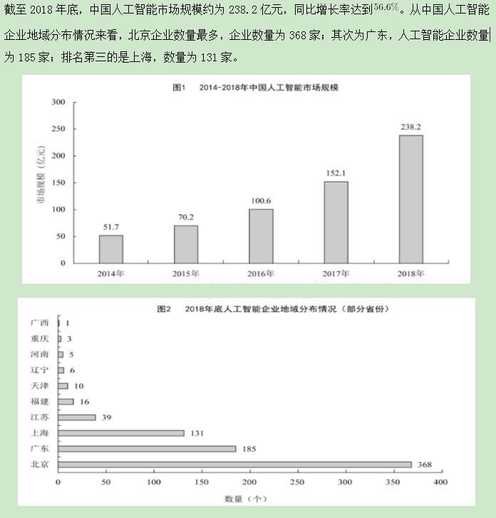 C.截至2018年底,中國(guó)人工智能企業(yè)北京企業(yè)數(shù)量不超過(guò)上海企業(yè)數(shù)量的