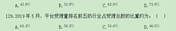 128.2019年5月,郵政通信行業(yè)的受理量比房地產(chǎn)業(yè)約少:( )