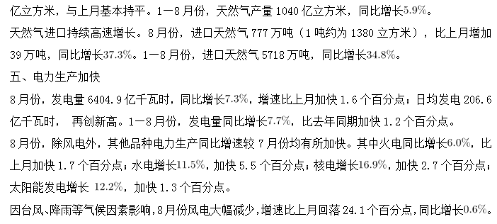 B.本年度8月份,原煤、天然氣、電力的生產(chǎn)同比均增長(zhǎng)