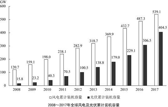 從主要清潔能源類型看,2017年全球?qū)︼L(fēng)能的投資為1070億美元,風(fēng)電新增裝機(jī)容量52.5GW,同比下降3.8%;累計(jì)裝機(jī)容量達(dá)到539.1GW,同比增長(zhǎng)11%。2017年全球?qū)夥耐顿Y為1608億美元,同比增長(zhǎng)18%;光伏新增裝機(jī)容量99.1GW,同比增長(zhǎng)29%;累計(jì)裝機(jī)容量達(dá)到404.5GW。其中,亞太地區(qū)新增裝機(jī)容量73.7GW,累計(jì)裝機(jī)容量221.3GW。(累計(jì)裝機(jī)容量不含報(bào)廢機(jī)器的裝機(jī)容量)