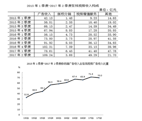 C.2017年2季度,在線視頻其他業(yè)務(wù)收入同比下降了50%以上