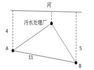 19.如下圖所示,某條河流一側(cè)有A、B兩家工廠,與河岸的距離分別為4km和5km,且A與B的直線距離為11km。為了處理這兩家工廠的污水,需要在距離河岸1km處建造一個污水處理廠,分別鋪設(shè)排污管道連接A、B兩家工廠。