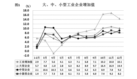 B、全年小微型企業(yè)增加值同比增量低于中型企業(yè)