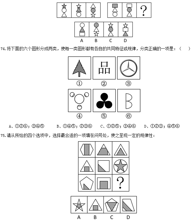 二、言語(yǔ)理解,共40題,本部分包括表達(dá)與理解兩方面的內(nèi)容,請(qǐng)根據(jù)題目要求選出答案。
