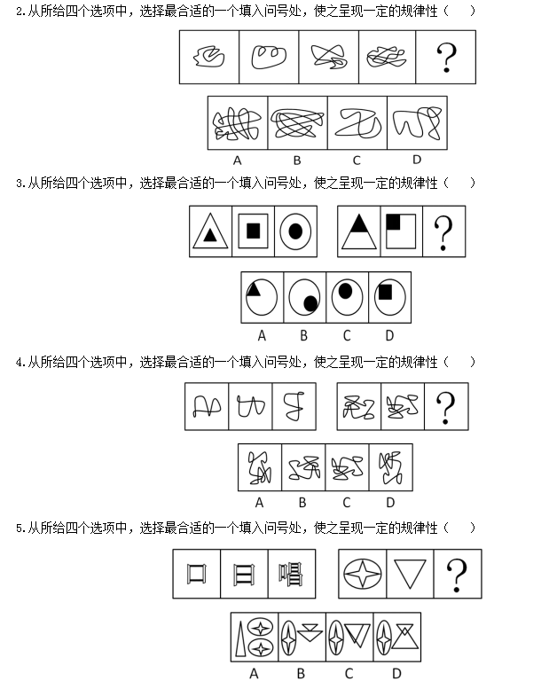 1. 從所給四個(gè)選項(xiàng)中,選擇最合適的一個(gè)填入問(wèn)號(hào)處,使之呈現(xiàn)一定的規(guī)律性( )