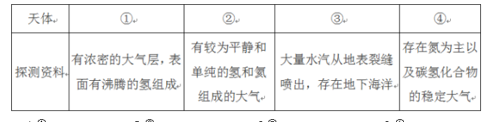 13.“旅行者1號(hào)”空間探測(cè)器歷經(jīng)36年的人類(lèi)星際探索,沿途探索①木星②恒星③土衛(wèi)二④土衛(wèi)六是否存在生命痕跡,并發(fā)回資料。閱讀表格,依據(jù)探測(cè)資料判斷將來(lái)最有可能孕育生命的天體是: