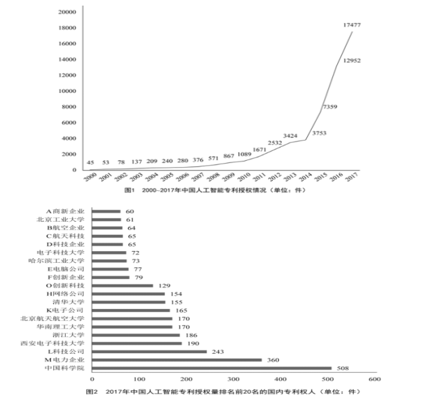 C.中國科學(xué)院僅2017年的人工智能專利授權(quán)量就接近2000至2004年5年全國授權(quán)量的總和
