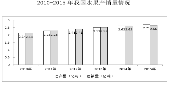 C、“十二五”期間,我國(guó)每年的水果產(chǎn)量都高于銷(xiāo)量