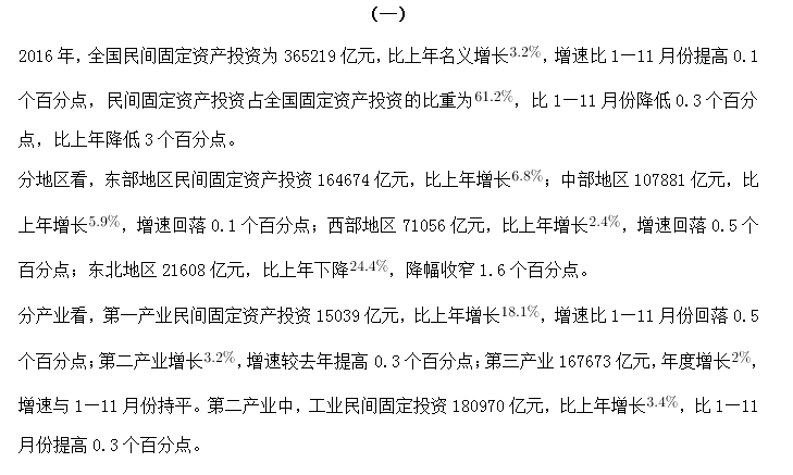 A、2016年度,三大產(chǎn)業(yè)中,第三產(chǎn)業(yè)民間固定資產(chǎn)投資月增速最為平穩(wěn)