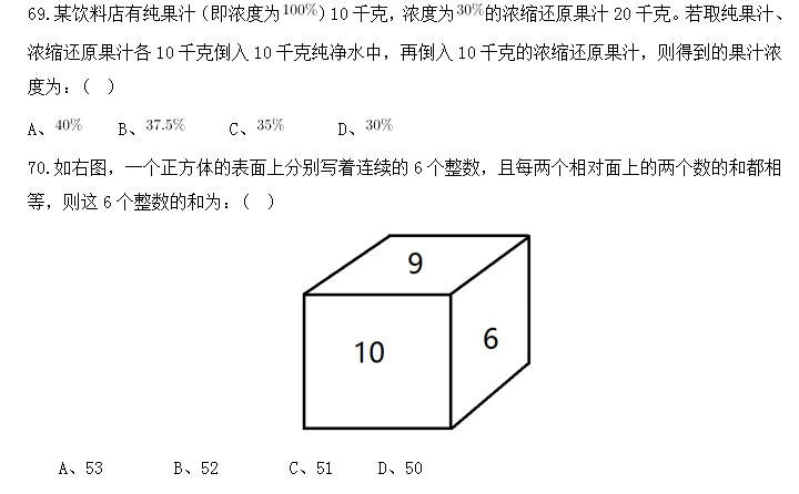 二.言語(yǔ)理解,共40題,本部分包括表達(dá)與理解兩方面的內(nèi)容,請(qǐng)根據(jù)題目要求選出答案。