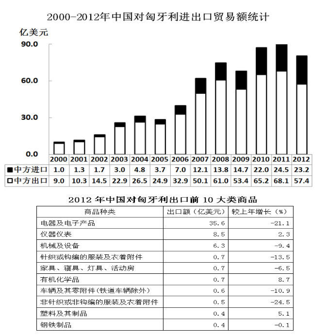 109.關(guān)于中國對匈牙利進(jìn)出口貿(mào)易,能夠從資料中推出的是( )
