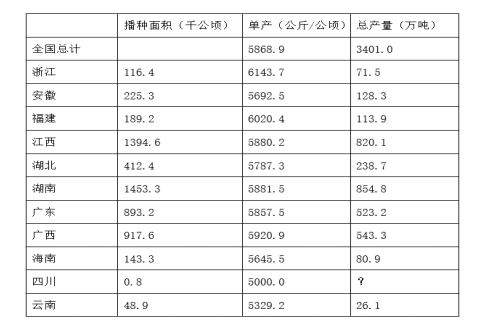 107.2014年早稻播種面積排名前兩位的省(自治區(qū)),當(dāng)年早稻產(chǎn)量和占全國(guó)總產(chǎn)量的比重在哪個(gè)范圍?( )