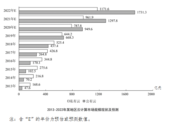 119.根據(jù)預測,2022年該地區(qū)云計算市場整體規(guī)模同比增長:( )