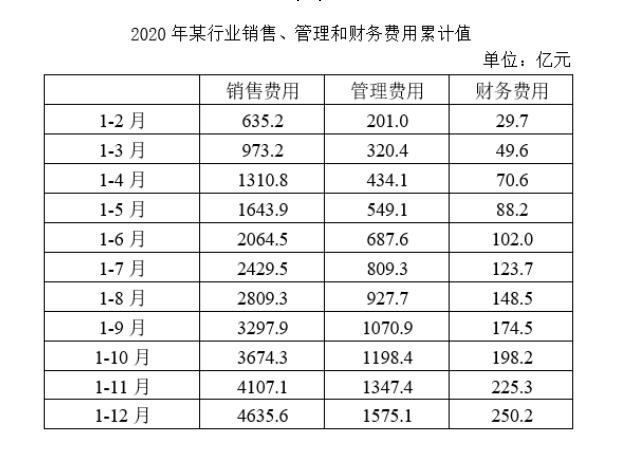 120.關(guān)于2020年該行業(yè)銷售、管理和財(cái)務(wù)費(fèi)用,能夠用上述資料中推出的是:( )