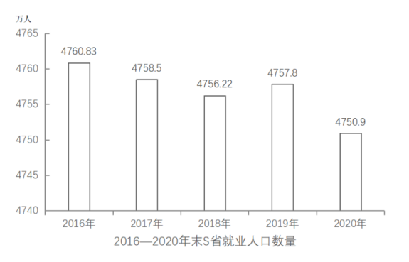 2020年末S省就業(yè)人口4750.9萬人,占常住人口總數(shù)的59.01%,與2019年末相比,就業(yè)人口占常住人口總數(shù)的比重下降0.24個(gè)百分點(diǎn)。