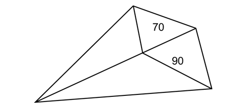 21. 如圖所示,公園有一塊四邊形的草坪,由四塊三角形的小草坪組成。已知四邊形草坪的面積為480平方米,其中兩個(gè)小三角形草坪的面積分別為70平方米和90平方米,則四塊三角形小草坪中最大的一塊面積為多少平方米?( )