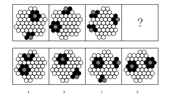 34.從所給四個(gè)選項(xiàng)中,選擇最合適的一個(gè)填入問號(hào)處,使之呈現(xiàn)一定規(guī)律性:( )