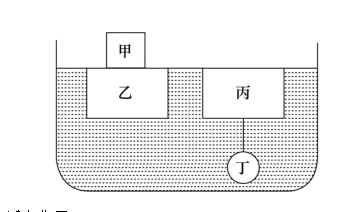 81、如圖所示,乙、丙兩個正方體漂浮在裝有溶液的容器內(nèi)保持靜止?fàn)顟B(tài),且上表面與液面持平,正方體甲下表面與乙物體的上表面密切接觸,球體丁與丙之間用細繩牽連,則下列說法正確的是( )。